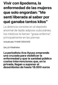 ana ayuso Lipedema, la enfermedad de las mujeres que solo engordan: Me sentí liberada al saber por qué ganaba 17 marzo, 2024 / Sin comentarios